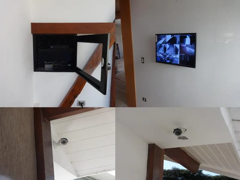 Projeto de CFTV e Alarme residencial com 08 pontos de monitoramento de câmeras e 04 zonas de alarme (perimetral e interno). Executado toda infra, cabeamento, instalações e configuração. Instalação e montagem de rack embutido para alocação do gravador de imagem e central de alarme.
