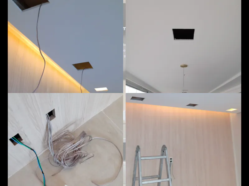 Para o projeto de Entretenimento e Segurança do apartamento, dessas 02 imagens anteriores, a LG preparou toda a infraestrutura com a passagem dos cabos, recortes no gesso, instalações dos equipamentos, configuração e treinamento para os usuários.