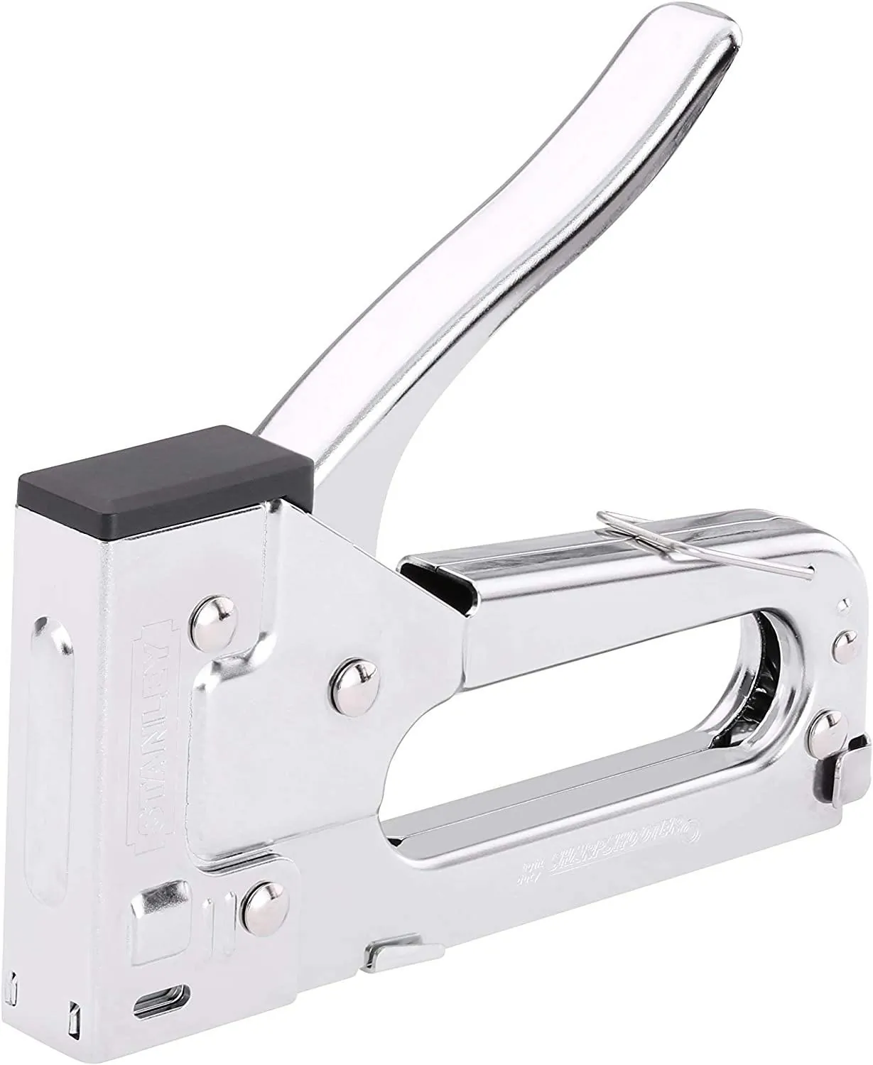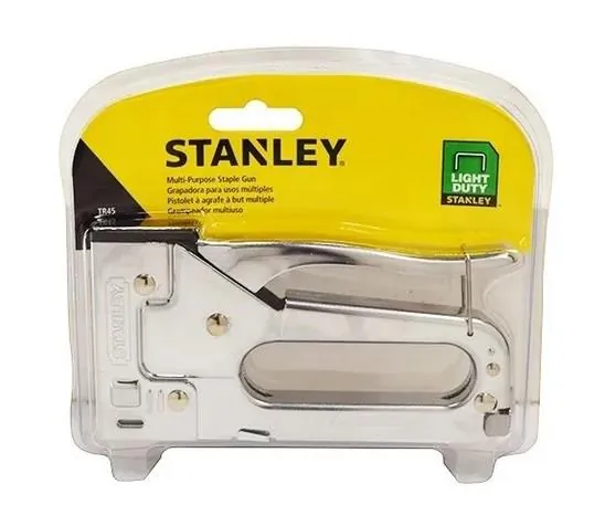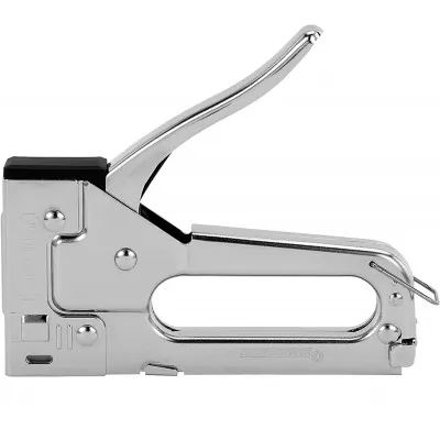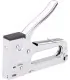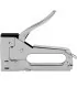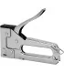 Corpo fabricado em aço; carregamento de grampos pela parte inferior; janela para recarga e verificação de tamanho dos grampos; usa grampos série tra700; possui trava de liberação do gatilho.