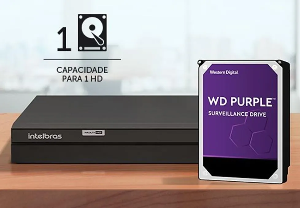 Com capacidade para 01 HD, oferece o maior armazenamento de imagens e suporte aos arquivos de vídeos.
