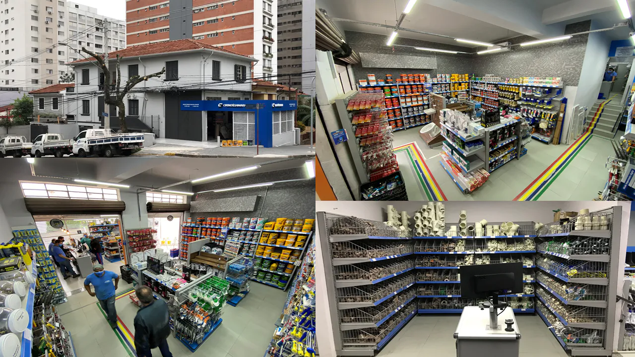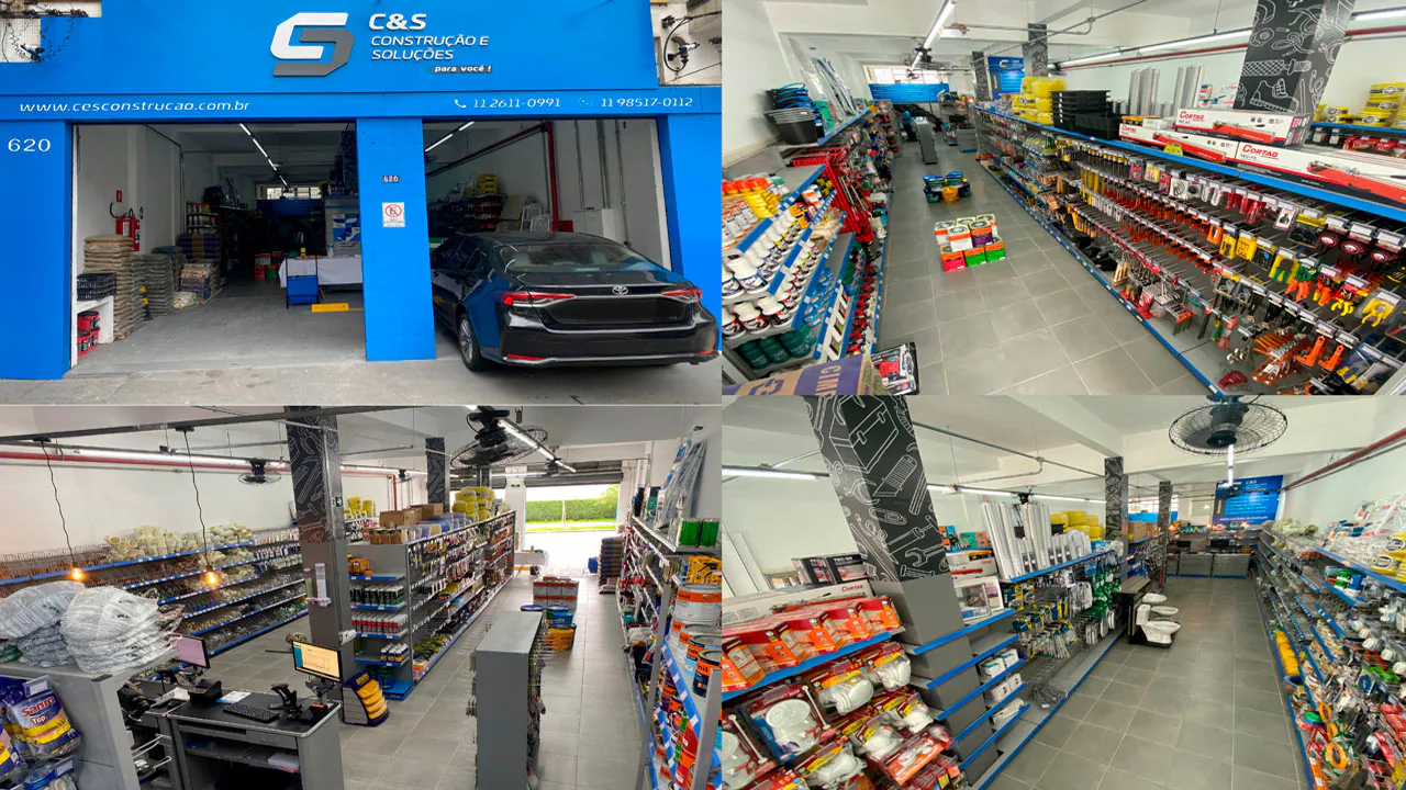 A 1ª unidade do grupo possui cerca de 300m2 de área de loja e mais 300m2 de área de estoque, o que permite atendermos nosso público com mais de 10.000 produtos divididos em 11 segmentos para casa e construção a pronta entrega. A estrutura dessa unidade permite que esta opere também como um C.D. para outras unidades.