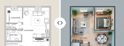 Envie sua planta baixa e veja ela renderizada em 3D fotorrealista.