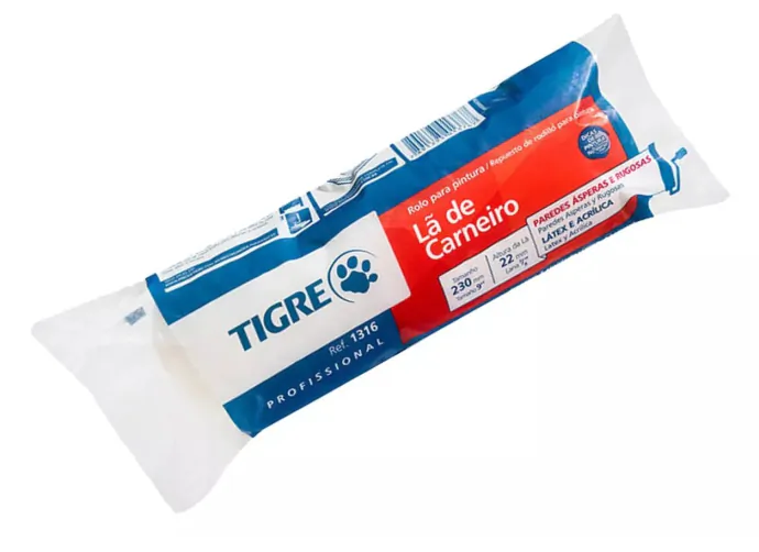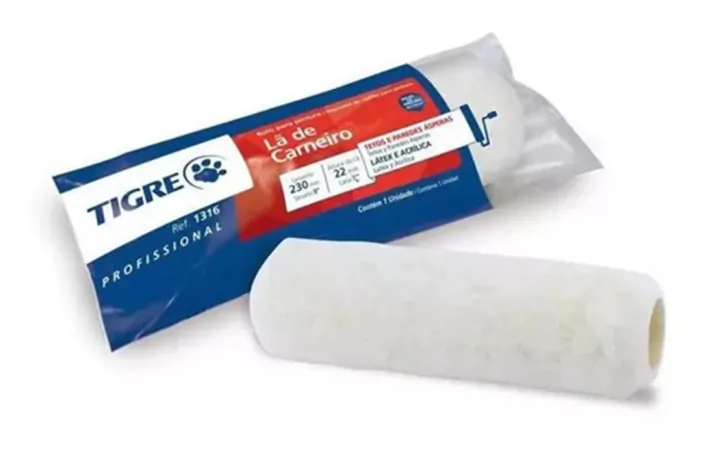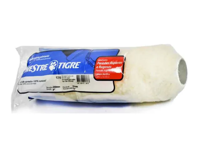 Rolo para pintura com lã de carneiro, ideal para aplicação de tintas PVA e acrílica em paredes lisas e ásperas.